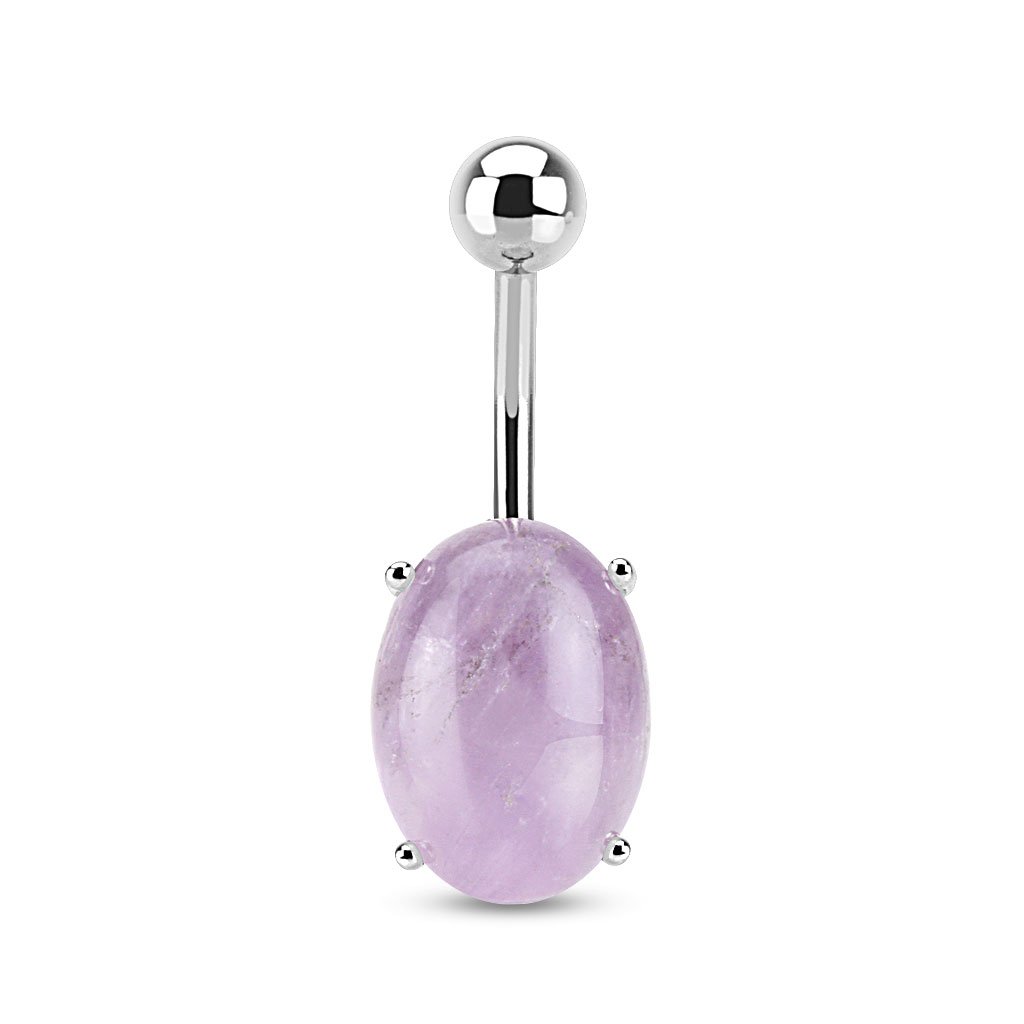 Amethyst Oval Semi Precious Stone Prong Set Navel Ring