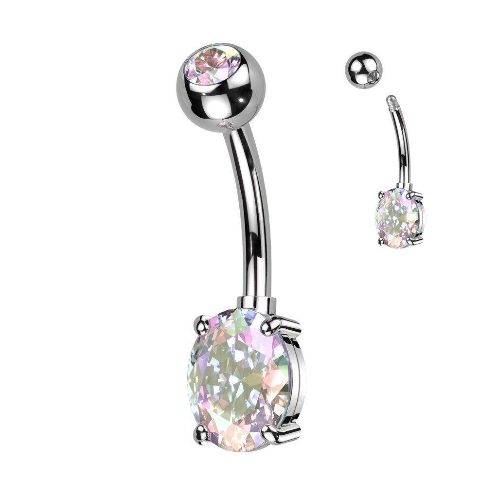 Oval Brass Prong Set with Pressed Fit CZ Top Belly Button Ring